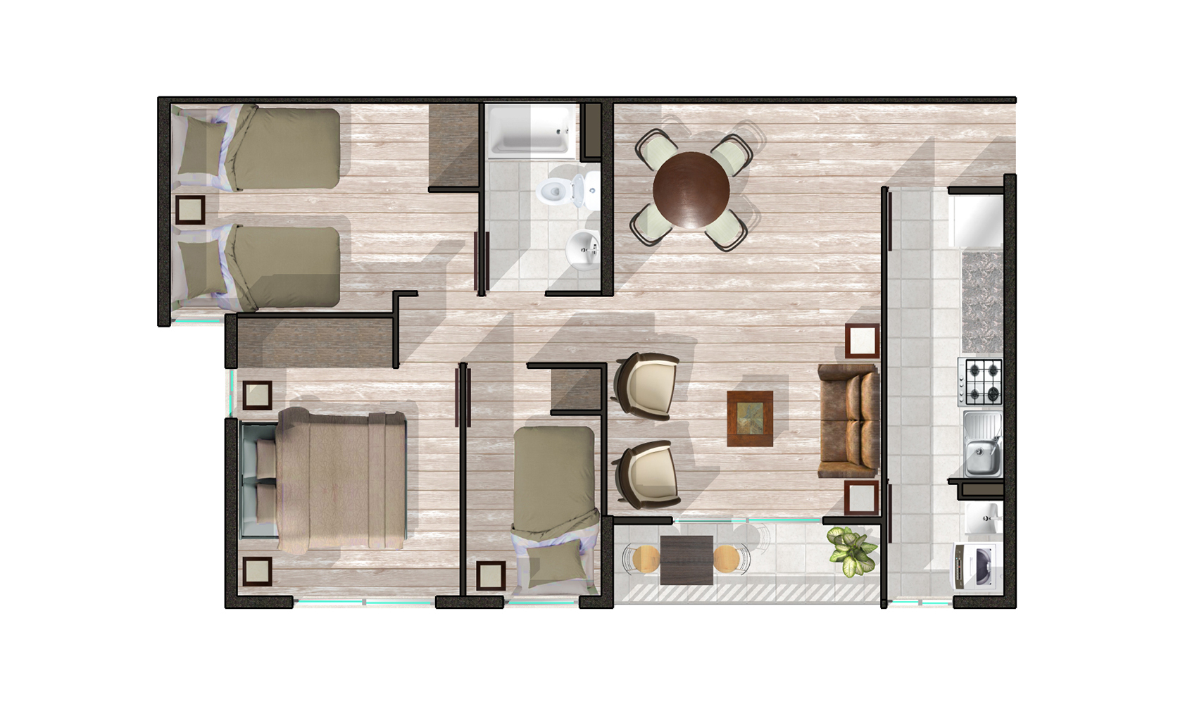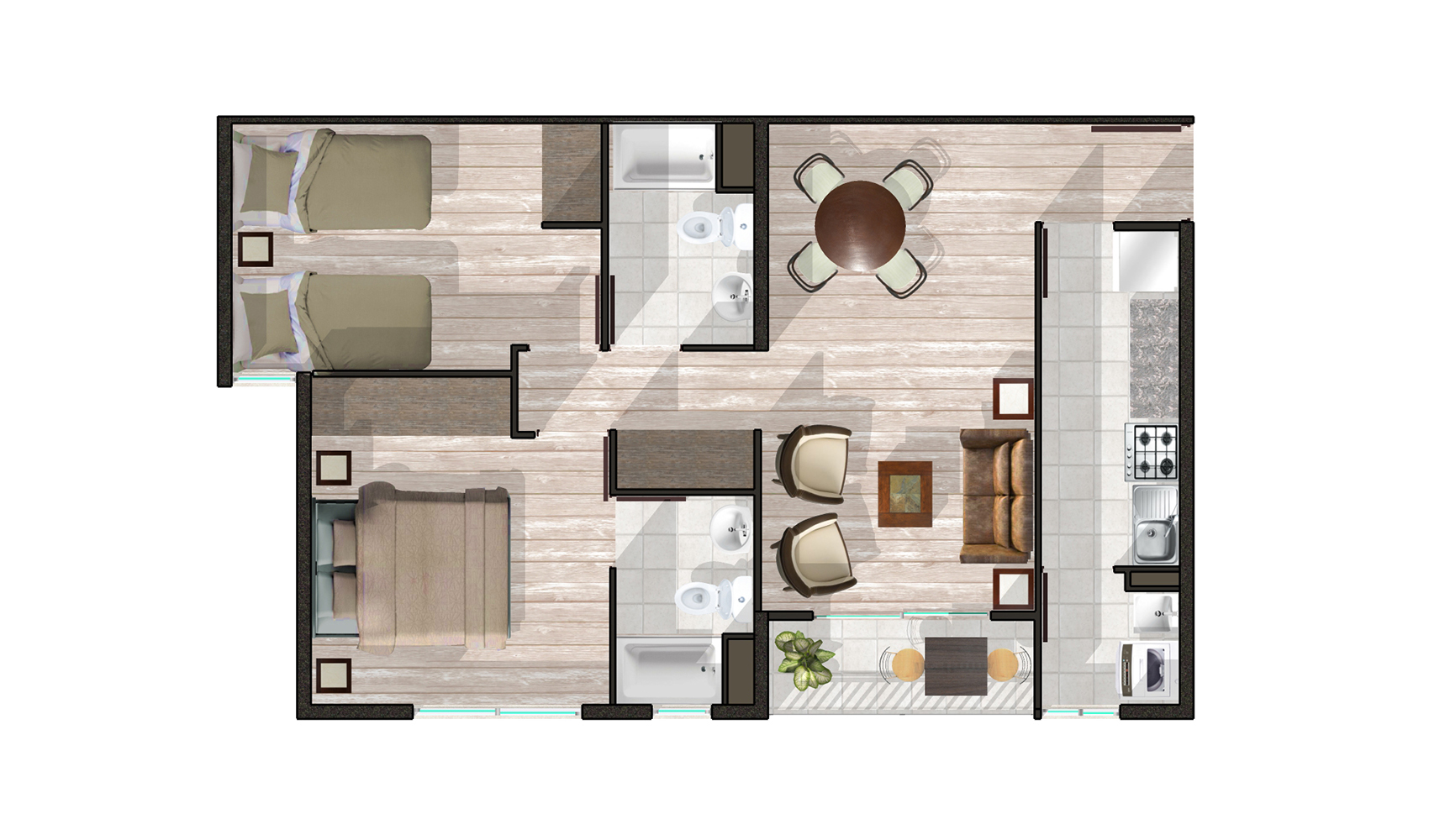 · Departamentos de 2 y 3 dormitorios.